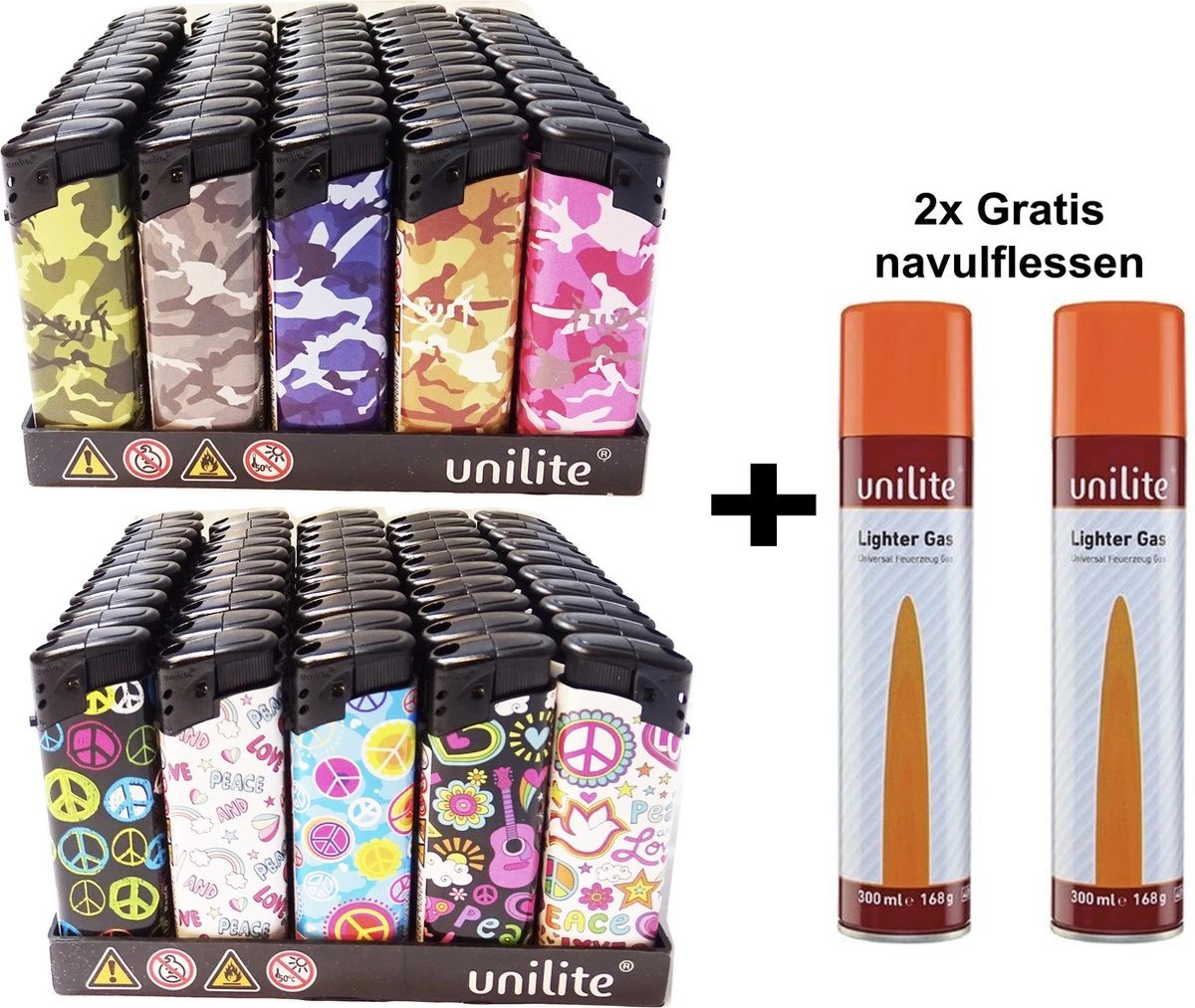 100 PIÈCES BRIQUETS AVEC 2x BOUTEILLES DE RECHARGE DE GAZ de la marque Unilite