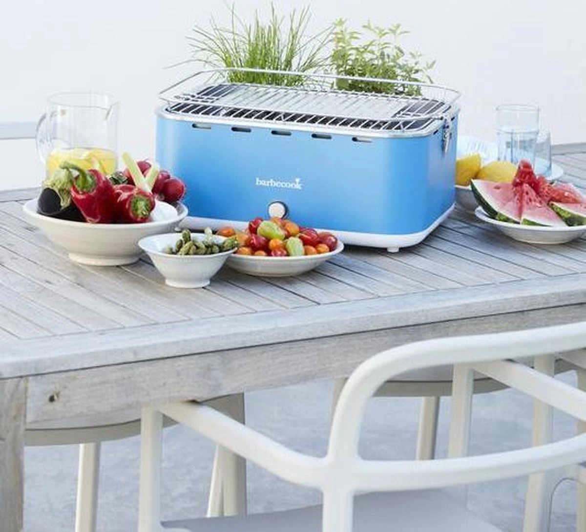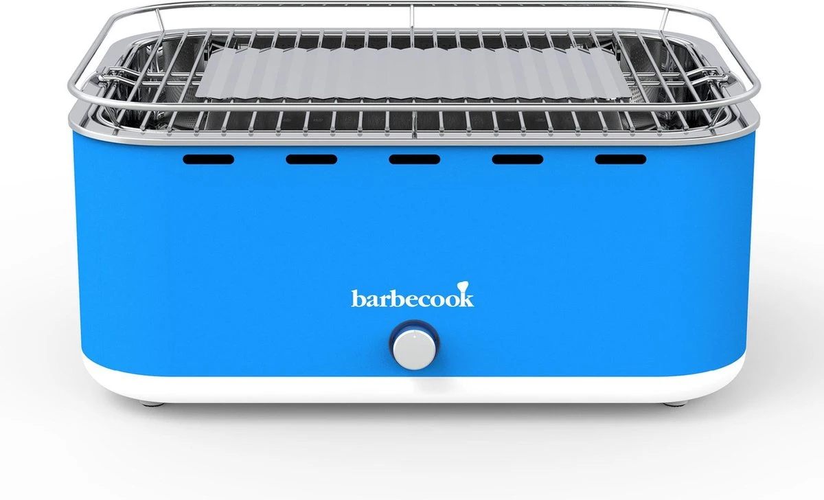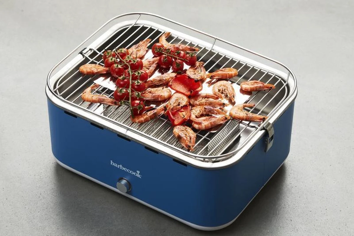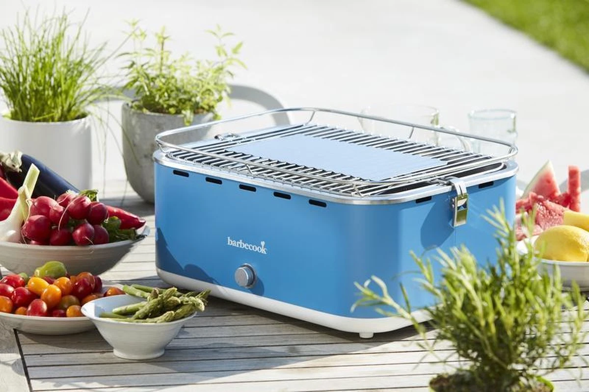 Grâce au design unique du barbecue de table Carlo en bleu gai, vous pouvez désormais griller sans fumée. Avec le ventilateur intégré sur piles AA (non incluses), vous assurez un charbon de bois constant et réglable. Il est rapide et continue de bien brûler grâce à l’air qui circule. De plus, Carlo est extrêmement économique : moins de charbon de bois et plus de résultats ! Le bbq de jardin, le bbq de balcon, le bbq de vacances, le bbq de camping ou le barbecue de table sur charbon de bois.
