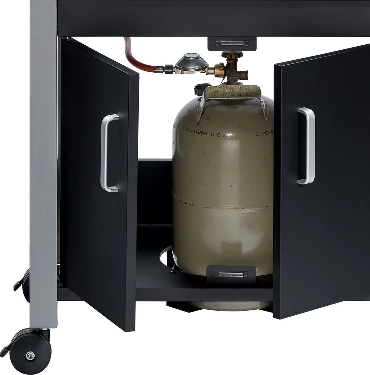 L’ Enders Chicago 3 offre un espace de rangement suffisant dans l’armoire inférieure pour une bouteille de gaz de 5 kg et des accessoires de barbecue. Les tablettes latérales offrent suffisamment d’espace pendant la cuisson au barbecue pour placer des aliments grillés et des accessoires de barbecue, mais peuvent être pliées après la cuisson, ce qui rend le gril à gaz compact. Vous pouvez facilement le transporter grâce aux quatre roues robustes qui sont fixées à l’armoire de base. Si vous n’avez pas d’espace pour placer le barbecue à gaz en dessous, il y a une housse de protection contre les intempéries appropriée.