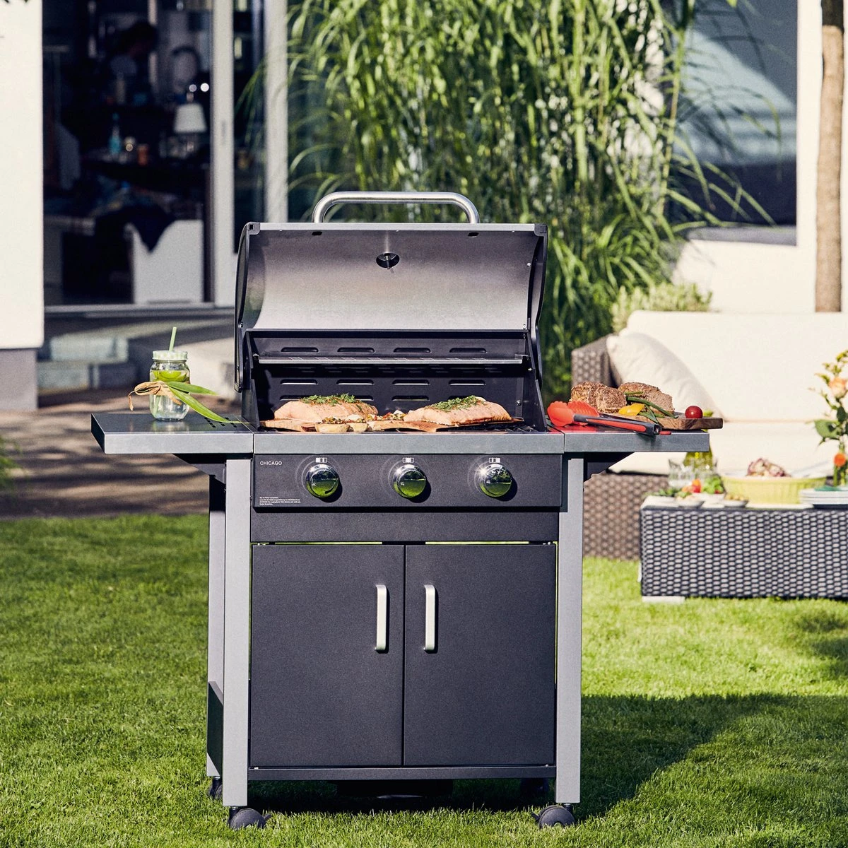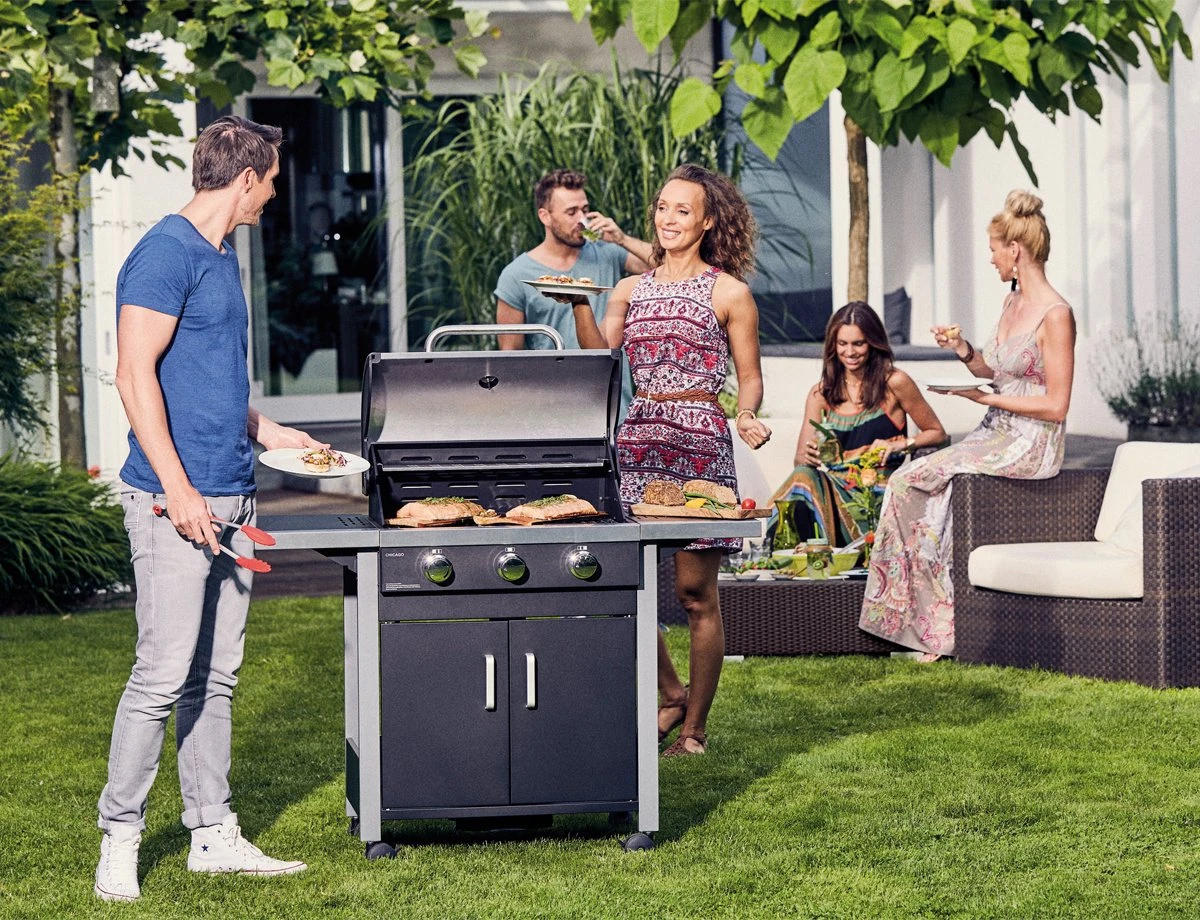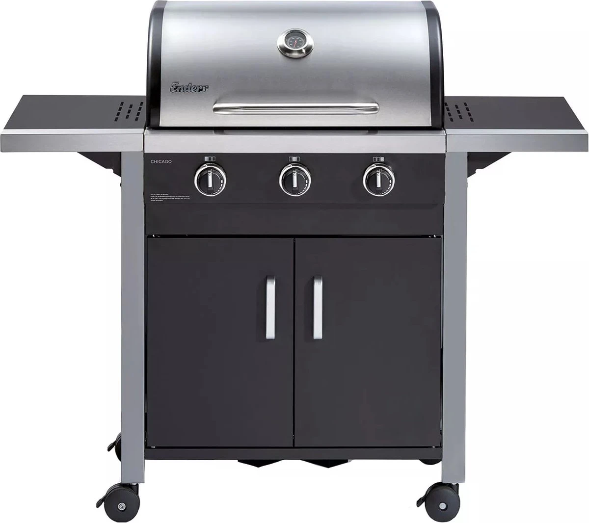 L’ Enders Chicago 3 possède une hotte robuste en acier inoxydable à double paroi avec thermomètre intégré et trois brûleurs en acier inoxydable de haute qualité réglables en continu. En combinaison avec le gril en acier inoxydable en trois parties, l’ Enders Chicago 3 vous offre une très bonne répartition de la chaleur. Vos plats grillés auront de délicieux arômes grillés qui raviront toute votre famille. La grille chauffante et les deux parties latérales rabattables vous offrent un espace de rangement supplémentaire pour vos plats grillés.