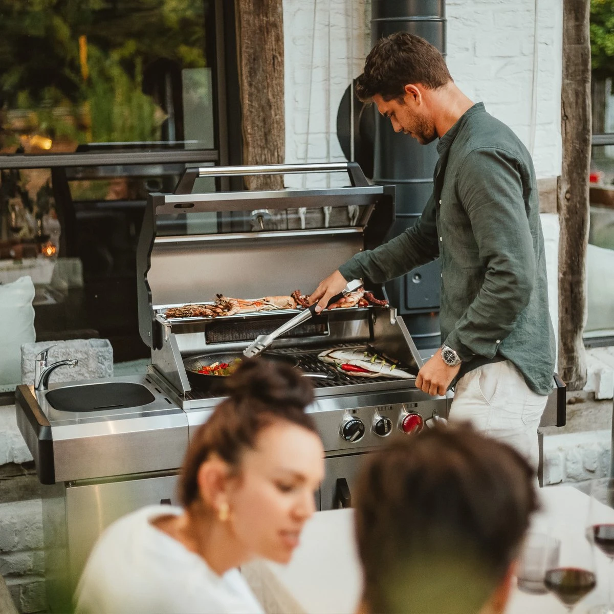 Vous pouvez facilement préparer des sauces, des soupes ou d’autres plats d’accompagnement sur la cuisinière sur le côté de la surface du gril. De cette façon, vous pouvez créer des menus entiers sur votre gril et vous n’avez pas à aller et venir entre la cuisine et le gril.
