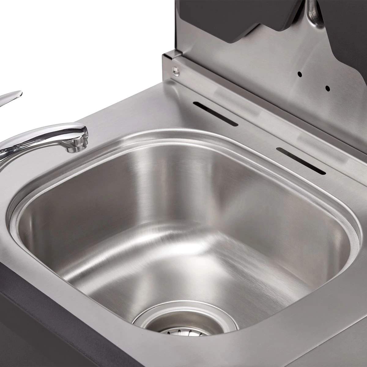 L’armoire inférieure de l’ Enders Kansas Pro 4 SIK Profi Turbo offre suffisamment d’espace pour la bouteille de gaz, les accessoires et la vaisselle. Bien sûr, la luxueuse cuisine extérieure dispose également d’un évier – les longues distances entre le gril et la cuisine appartiennent au passé. Les huit roulettes permettent de changer facilement l’emplacement du barbecue à gaz. Le nettoyage de l’ Enders Kansas Pro 4 SIK Profi Turbo est rapide et facile grâce au système de nettoyage Simple Clean , où les pièces individuelles en acier inoxydable, qui peuvent être retirées sans outils et nettoyées au lave-vaisselle, sont rapides et faciles.