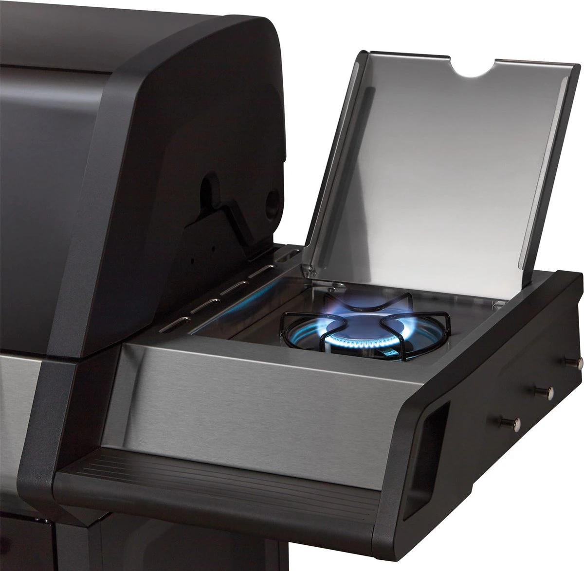 Vous pouvez facilement préparer des sauces, des soupes ou d’autres plats d’accompagnement sur la cuisinière sur le côté de la surface du gril. De cette façon, vous pouvez créer des menus entiers sur votre gril et vous n’avez pas à aller et venir entre la cuisine et le gril. La cuisinière latérale fonctionne avec un brûleur latéral supplémentaire.
