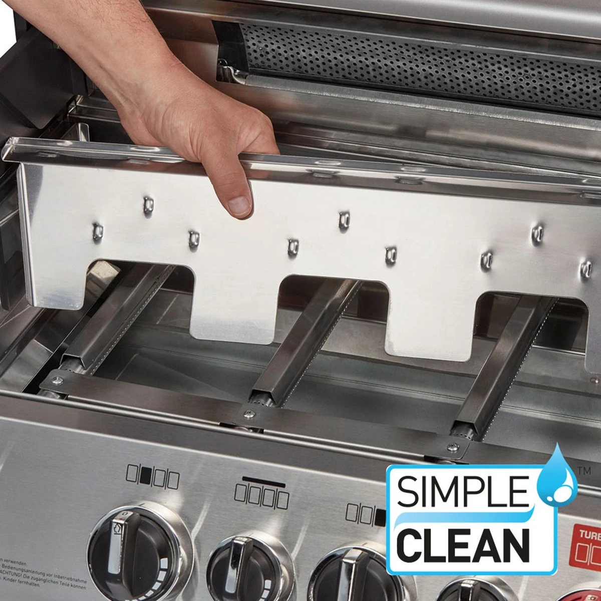 Grâce au système de nettoyage Simple Clean, les pièces individuelles de la boîte du gril, ainsi que les couvercles de flamme et les tiroirs à graisse, peuvent être retirés à la main sans outils. De cette façon, vous pouvez facilement nettoyer votre gril après utilisation et mettre simplement les pièces les plus sensibles à la saleté dans le lave-vaisselle.