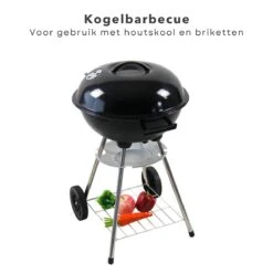 Kogelbarbecue Cheqo® – Ø46 Cm – BBQ Rond En Métal – Pour Charbon De Bois & Briquettes – 2 Grandes Roues – Étagère De Rangement Chromée – Hauteur De Cuisson 78cm – Plaque De Collecte – Poids 5kg – Homologation GS/TÜV – Barbecue