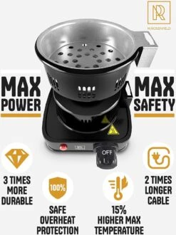 M. Rosenfeld Allume-charbon électrique – Fire Tower 3.0 Allume-charbon Avec Câble Extra Long De 150 Cm, Panier à Charbon Amovible Et 2 Pinces.