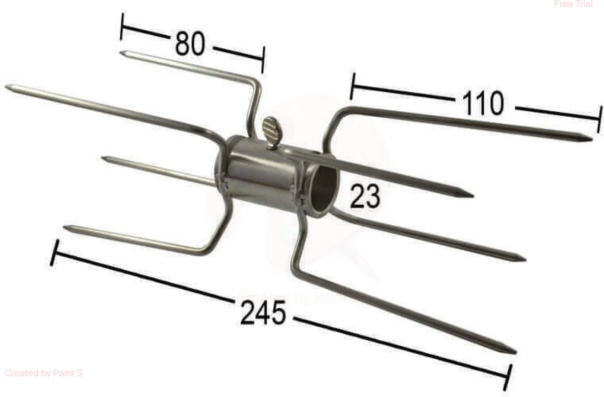 Convient pour une brochette ronde jusqu’à 22 mm ou une brochette carrée jusqu’à 16 mm.