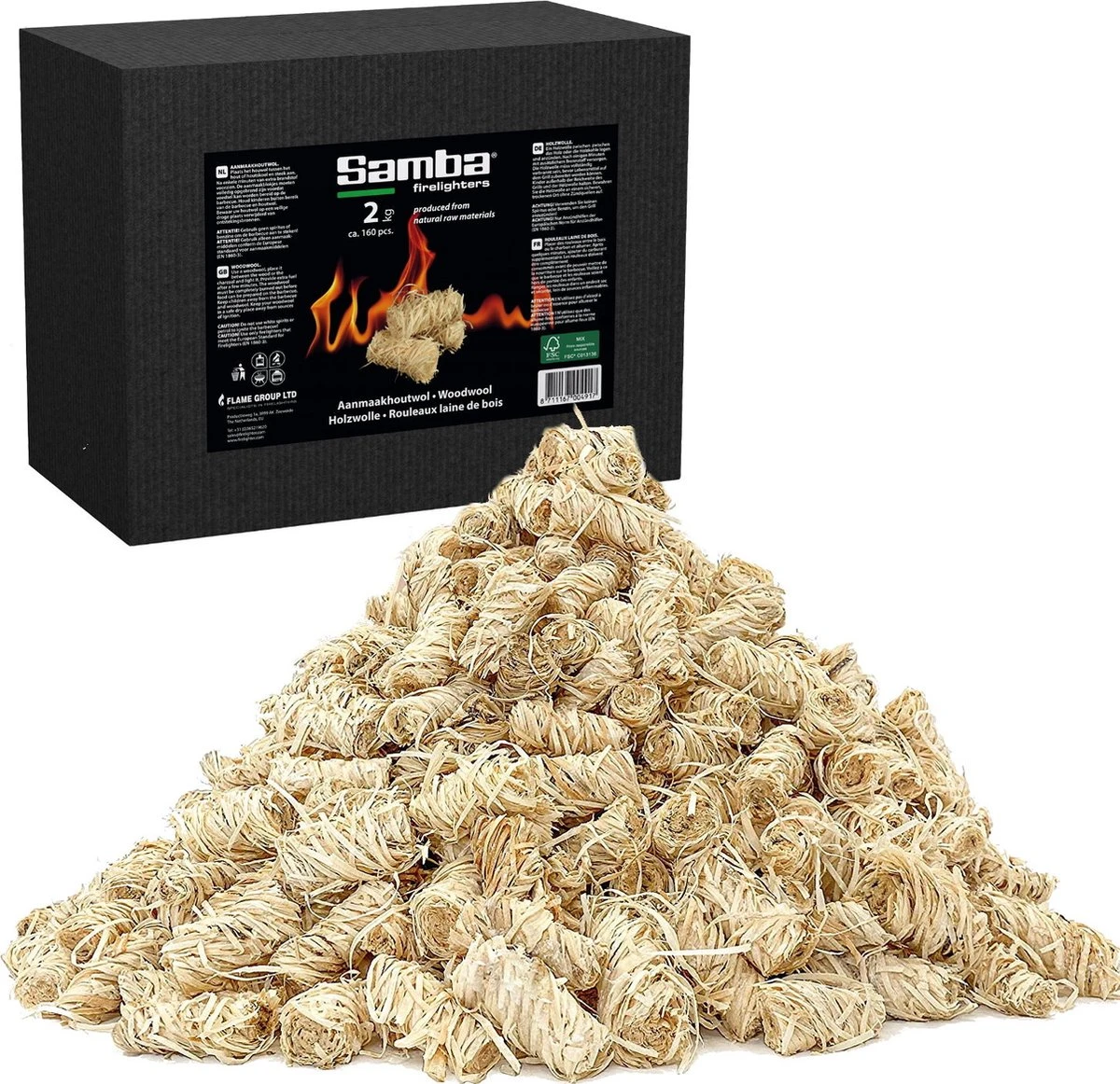 Nos copeaux de briquet en laine de bois Samba sont composés de bois et d’huile végétale et ne contiennent pas de produits chimiques et sont donc parfaits pour allumer votre BBQ, vous pouvez également allumer facilement votre cheminée avec la Laine de bois.