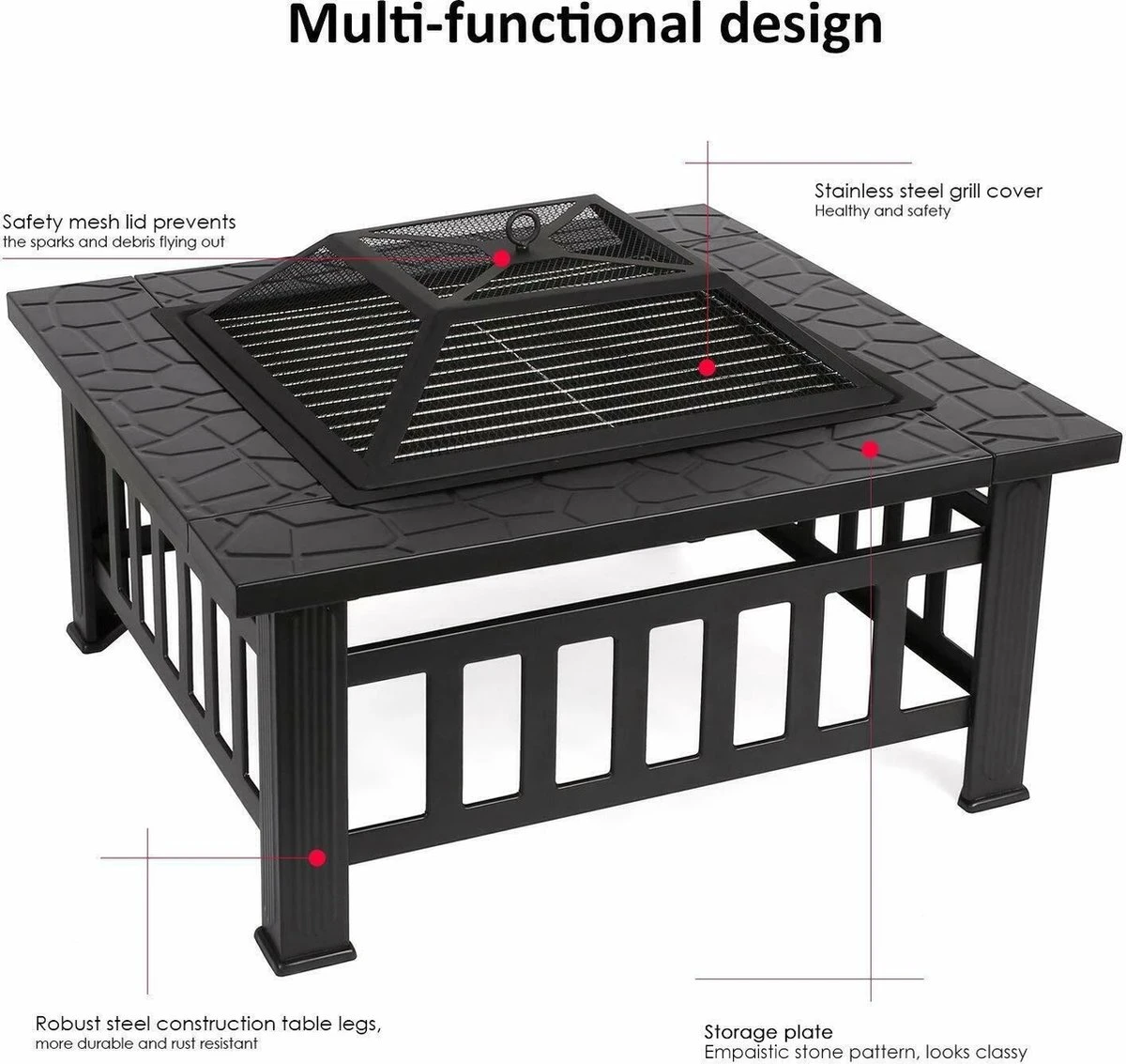 Taille du bol à feu: 53 * 53 * 11 cm / 20,87 * 20,87 * 4,33 «