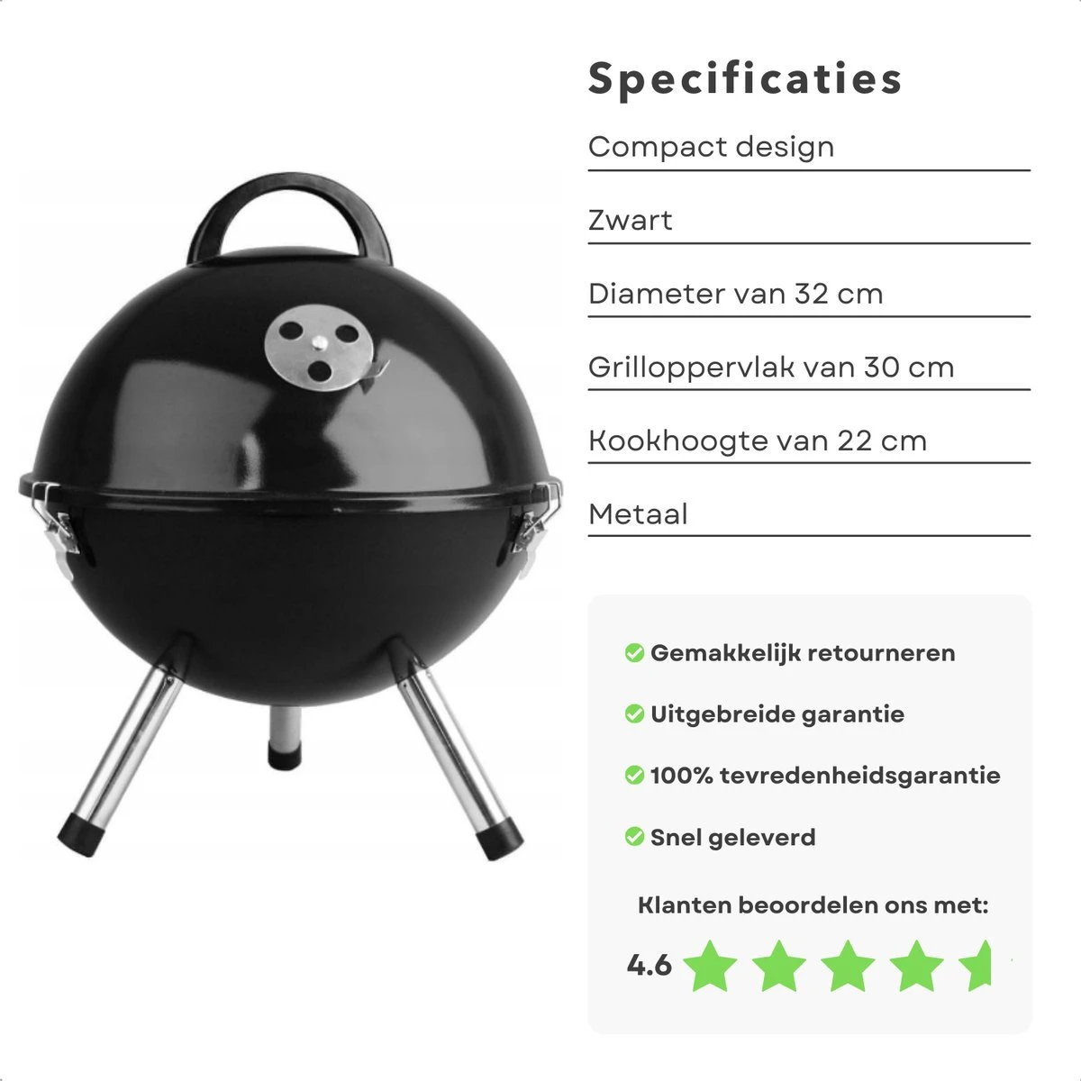 Le barbecue Kogel est un barbecue de table super pratique et compact dans une version noire robuste. Avec un diamètre de 32 cm et une surface de cuisson de 30 cm, il offre suffisamment d’espace pour faire un barbecue pour 2 à 4 personnes. La hauteur de cuisson est de 22 cm, vous avez donc un accès facile à la source de chaleur. À l’aide de la grille de ventilation réglable, vous pouvez déterminer exactement la quantité d’air nécessaire pour votre parabole. De plus, vous fermez le capot rond avec une fermeture à clip, ce qui est bon pour le développement de fumée et la sécurité. Grâce à la construction à 3 pieds, il reste stable sur n’importe quelle surface et ne pèse que 2 kg !