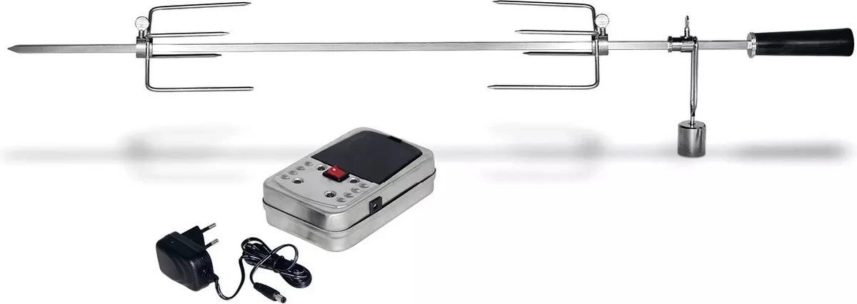 La viande est uniformément cuite, a une belle couleur et est particulièrement croustillante. L’ensemble de brochettes de gril Enders se compose d’un moteur (piles ou alimentation), ainsi que de la rôtissoire comprenant un support et deux pinces de poulet.