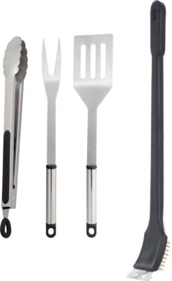 Matériel: acier inoxydable. Format : spatule 37 cm, fourchette 37 cm, pince 30 cm. Couleur : argent. composé de 1x brosse de nettoyage pour barbecue en plastique 43 cm, 1x ensemble d’outils pour BBQ/ barbecue 3 pièces en acier inoxydable
