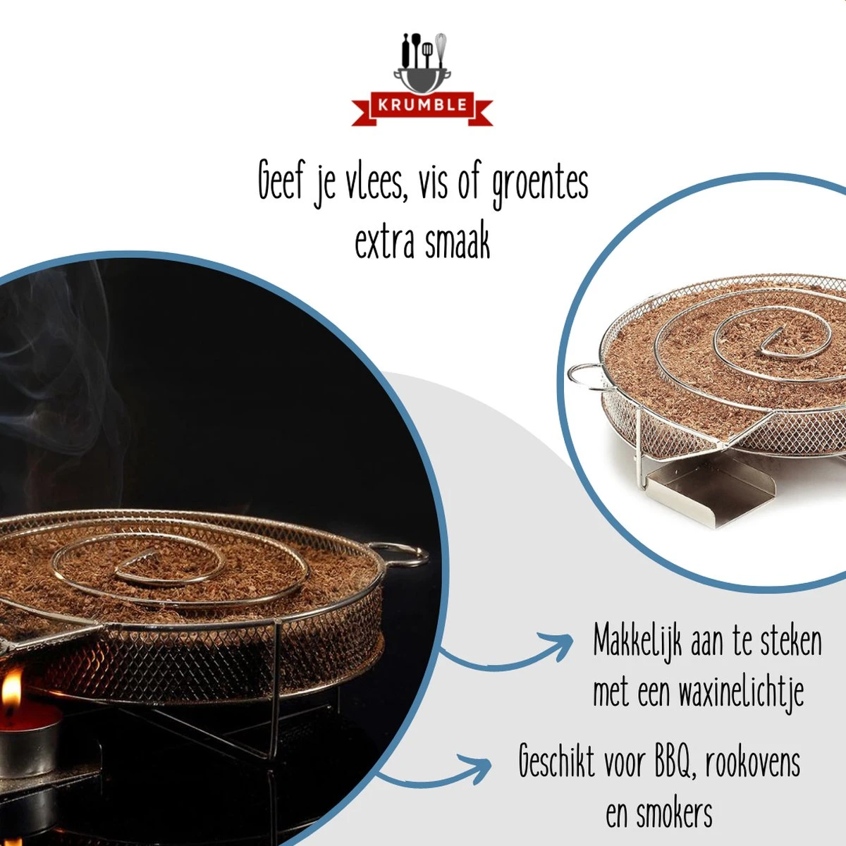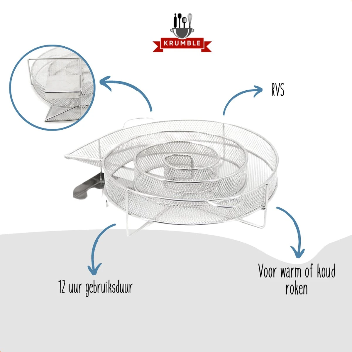 | Contenu de l'emballage | 1x Krumble Smoker box round ø20cm Boîte à fumée ronde pour le fumage à froid de viande, poisson, fromage ou autres aliments au barbecue ou dans le fumoir – acier inoxydable |