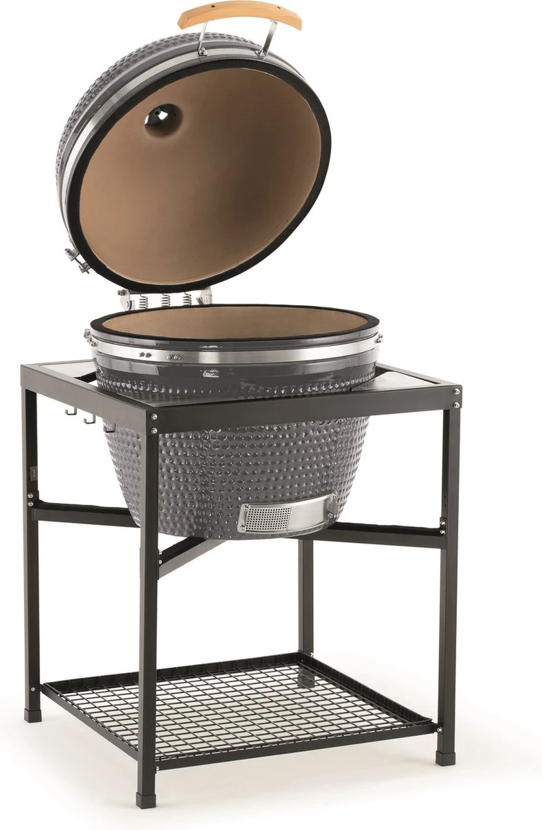 Avec le Landmann Kamado 26 pouces Grijs , vous pouvez profiter du goût authentique et fumé du charbon de bois. Le matériau céramique du barbecue distribue la chaleur uniformément, ce qui permet une cuisson uniforme des aliments. Le barbecue est également équipé d’un thermomètre intégré, ce qui vous permet de contrôler avec précision la température et de toujours préparer parfaitement votre viande, poisson ou légumes. De plus, vous pouvez rehausser encore plus la saveur en ajoutant des copeaux de bois au feu, ce qui ajoute une saveur fumée supplémentaire à vos plats.