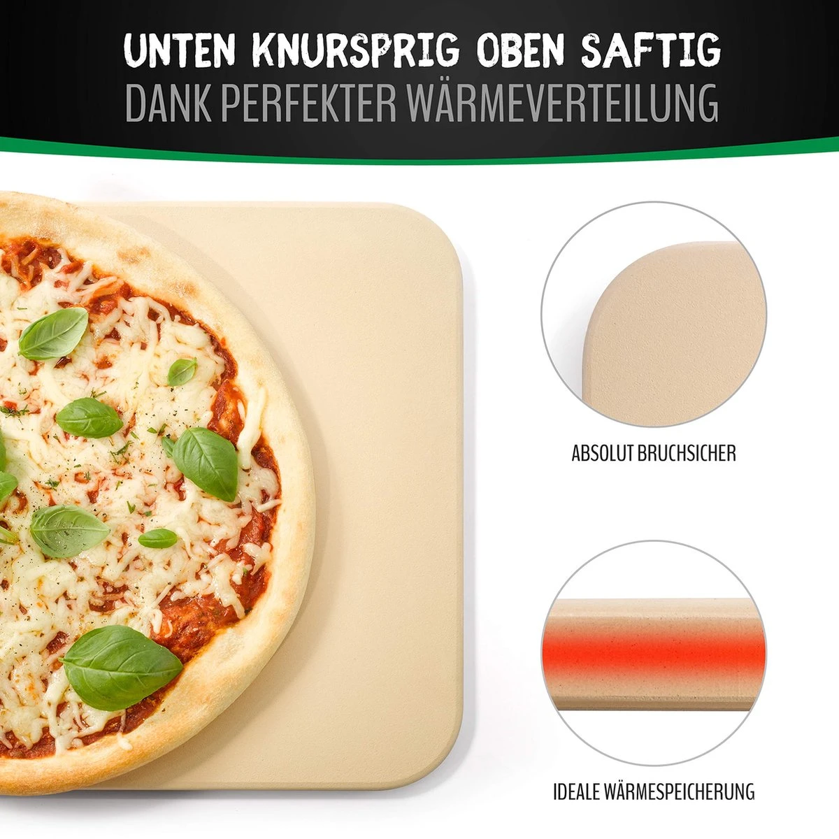 – Avec la pierre à pizza pour four et gril à gaz, vous faites entrer la petite pizzeria italienne dans votre maison. La pierre de cordiérite de haute qualité assure une répartition parfaite de la chaleur et un résultat à l’italienne !