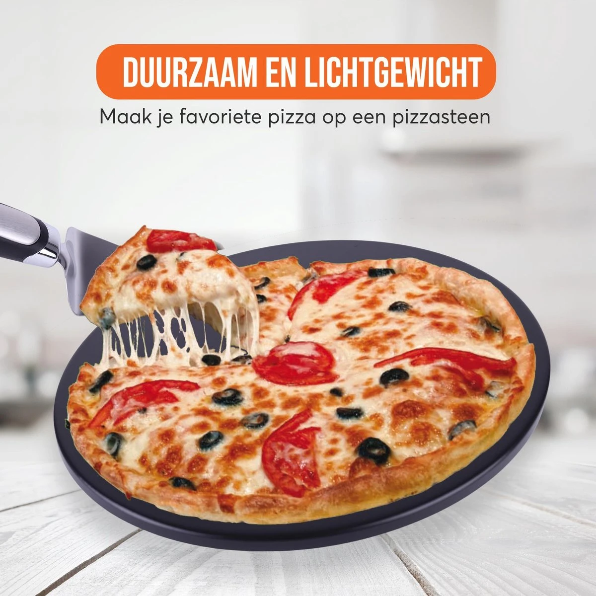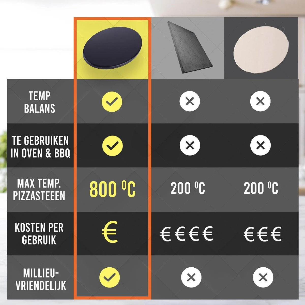 La pierre a une surface lisse où la pierre est facile à nettoyer. Pour maintenir la température plus constante dans un four normal, il y a la pierre à pizza. Vous le placez dans le four avant de le préchauffer. Une fois que le four a atteint la bonne température, placez la pizza sur la pierre à pizza. Cuire au four normalement, mais prévoir un temps de cuisson plus court car la pizza est maintenant également chauffée par la pierre. La croûte de la pizza sera plus croustillante et le fond est bien cuit 🙂