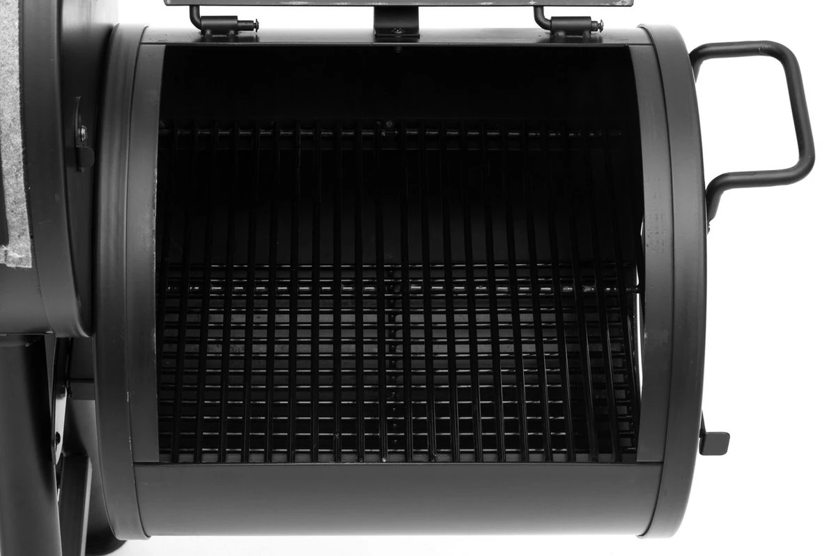 Fumoir barbecue déporté extrêmement robuste. Le foyer et la chambre de combustion sont séparés, de sorte que la fumée est dirigée vers le gril/chambre de fumée. Les grilles de cuisson robustes sont en fil d’acier émaillé de 6 mm d’épaisseur.