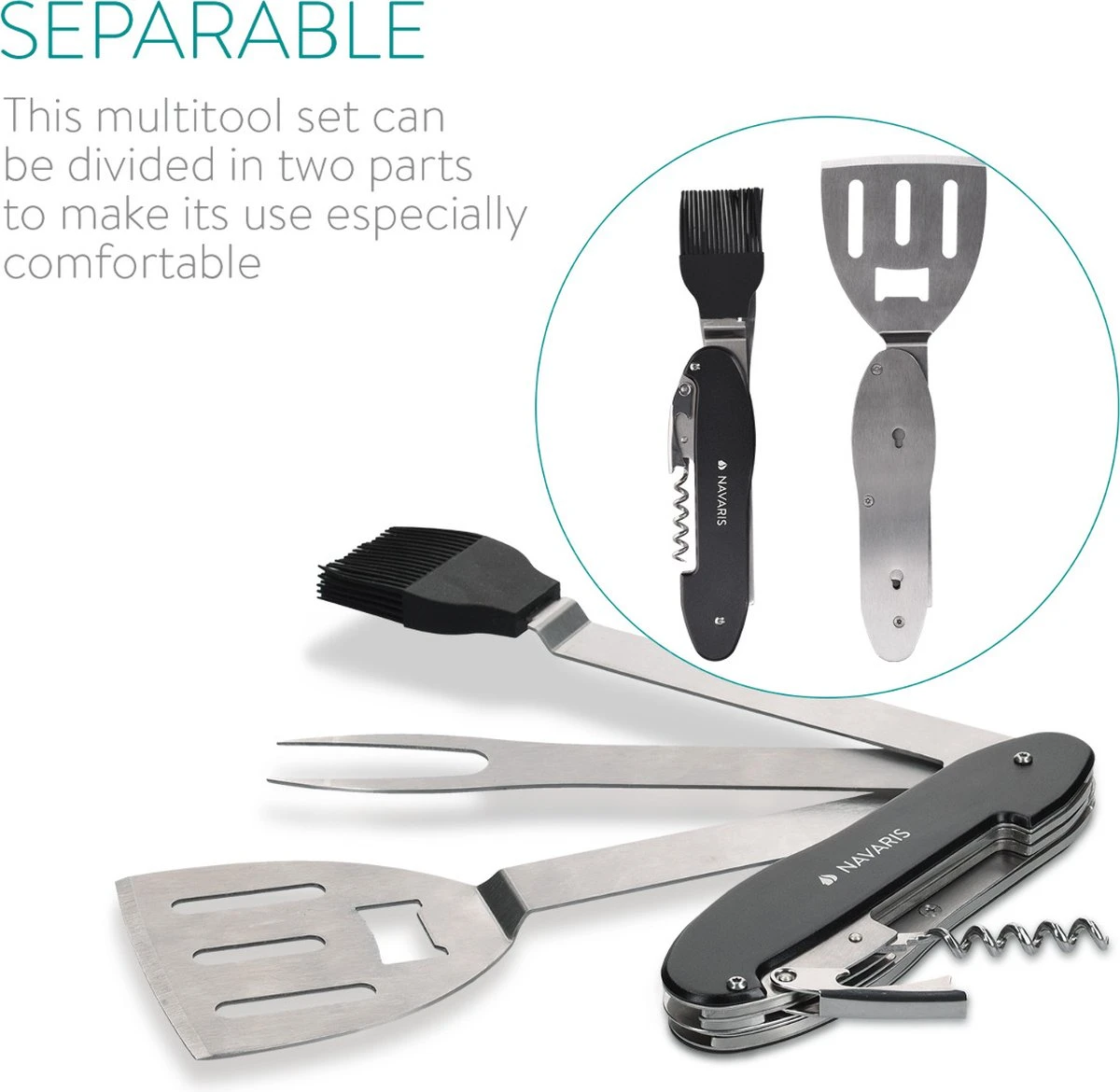 - MULTIFONCTIONNEL : Vous avez tout sous la main pour vous offrir, à vous ou à vos invités, une viande bien cuite. Le multi-outil peut tout faire, de l’ouverture d’une bouteille à l’arrosage de la viande pour un brunissement ou une cuisson supplémentaire.