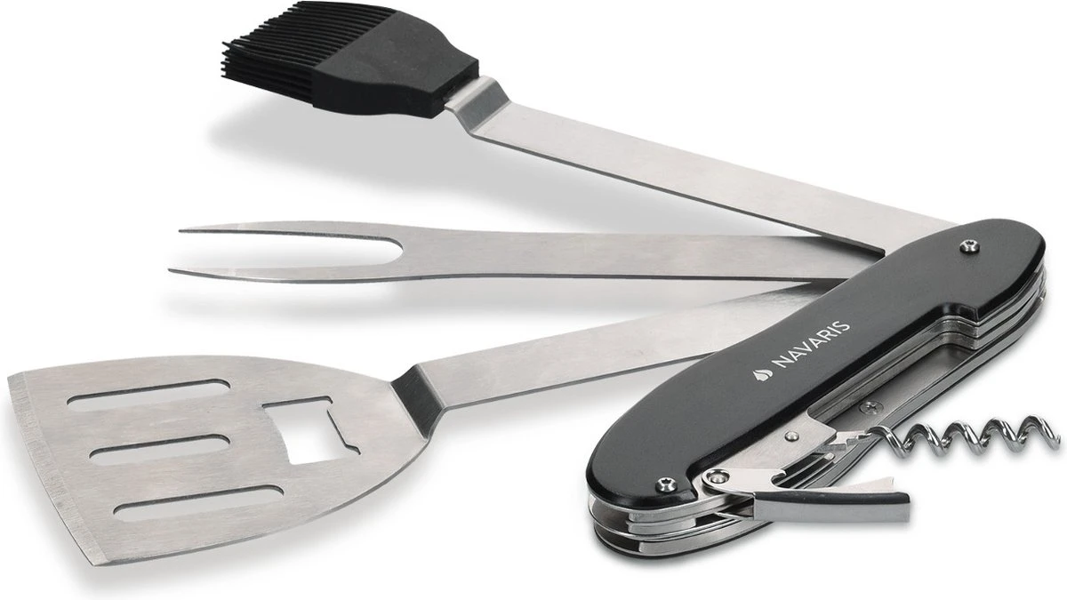 Ben le boulanger avec ce multi-outil Navaris 5 en 1, à utiliser pendant et pour le barbecue. Qu’il s’agisse de retourner des hamburgers ou d’ouvrir un verre de vin, ce couteau de cuisine suisse peut le faire et l’a.