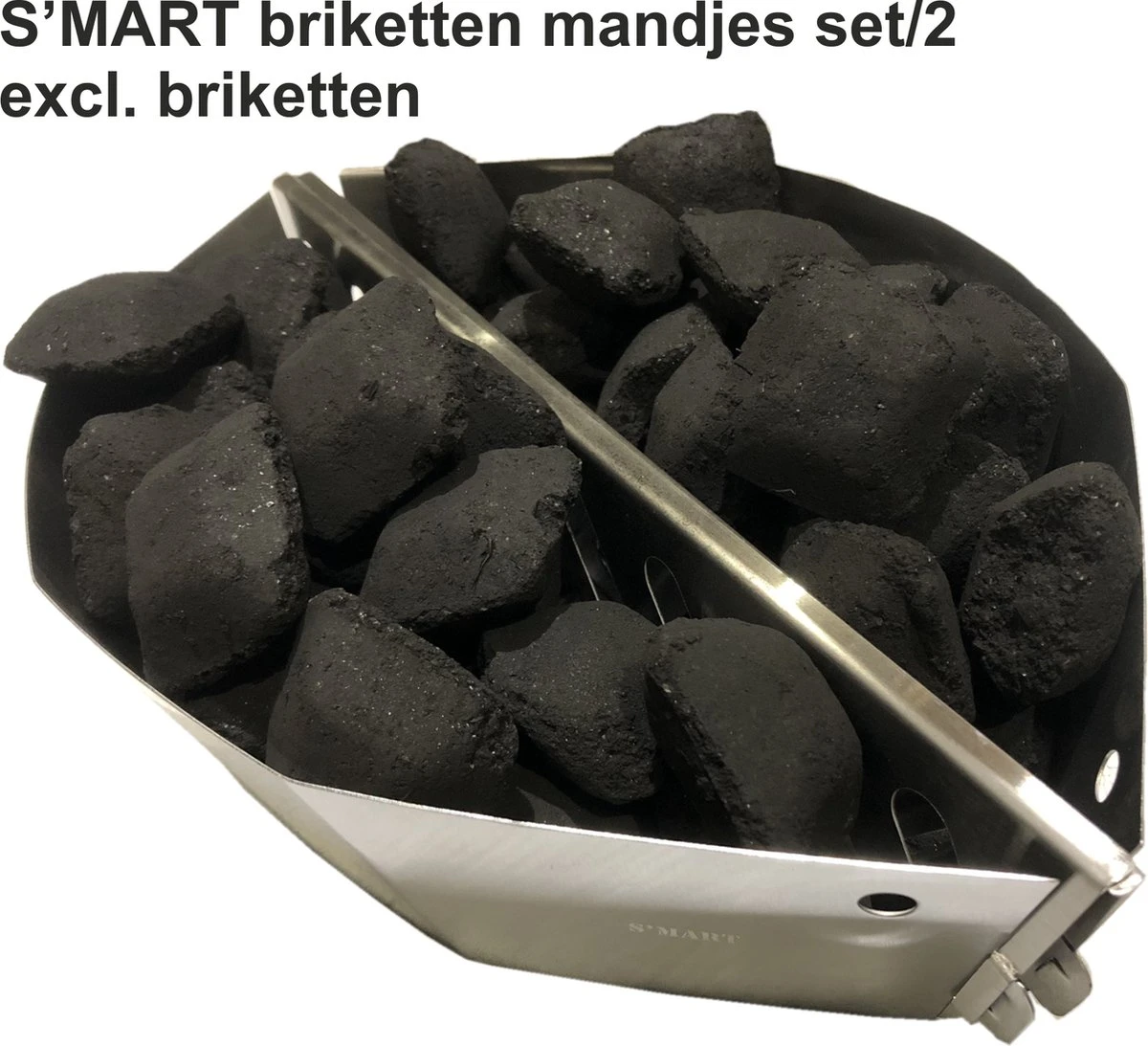 2 porte-briquettes/charbon de bois en acier inoxydable de haute qualité. Ces paniers universels conviennent pour une utilisation dans les BBQ bullet de 47 et 57 CM. Ces supports garantissent que les briquettes restent ensemble, ce qui permet une combustion meilleure et plus longue. Idéal pour les barbecues indirects car une zone de repos peut facilement être créée. Nos contenants ne s’oxydent pas et supportent très bien les hautes températures. Cela garantit le succès pour une utilisation fréquente. D’autres porte-briquettes en acier ou en alu-zinc s’oxydent et se désagrègent après quelques utilisations.