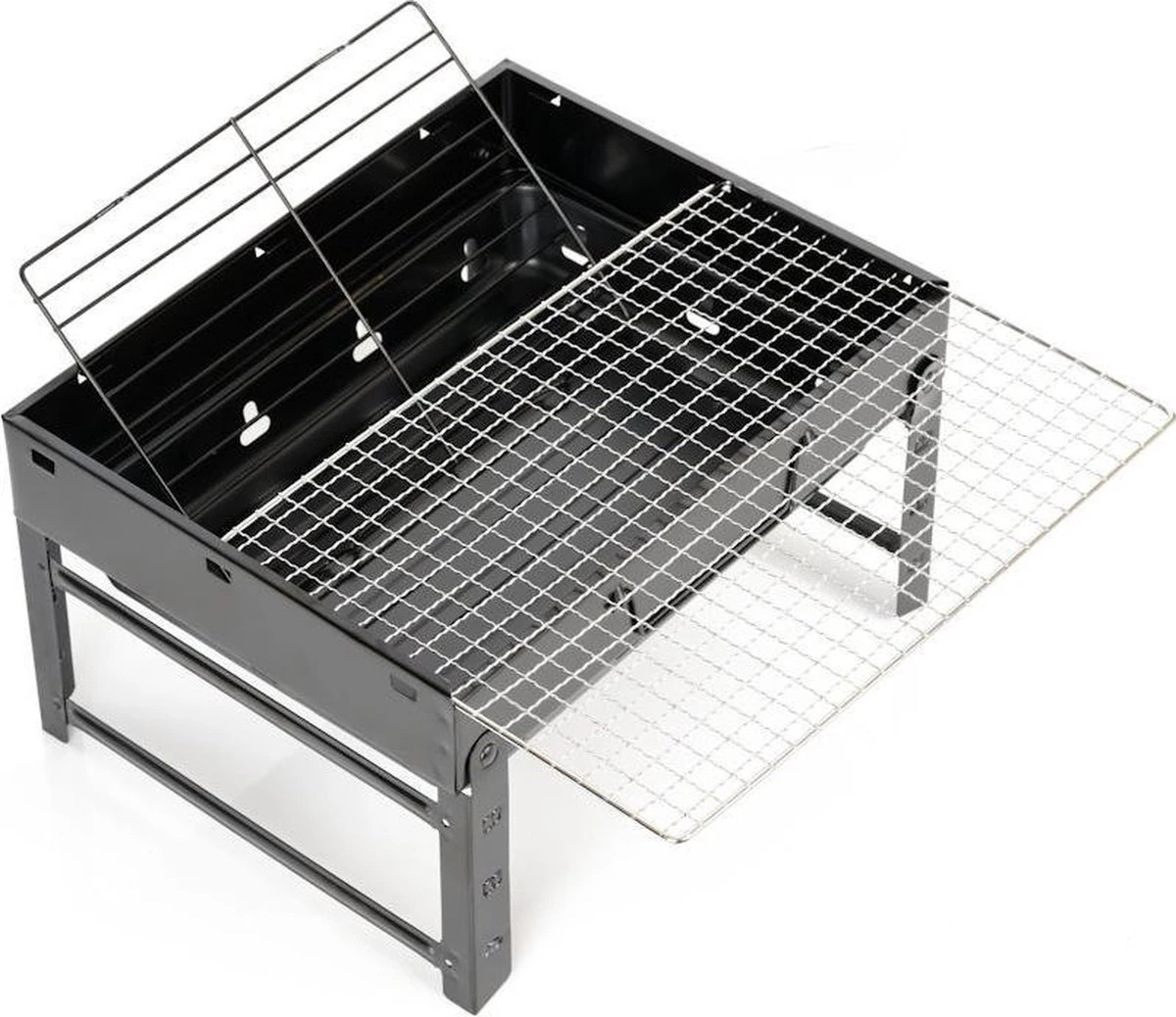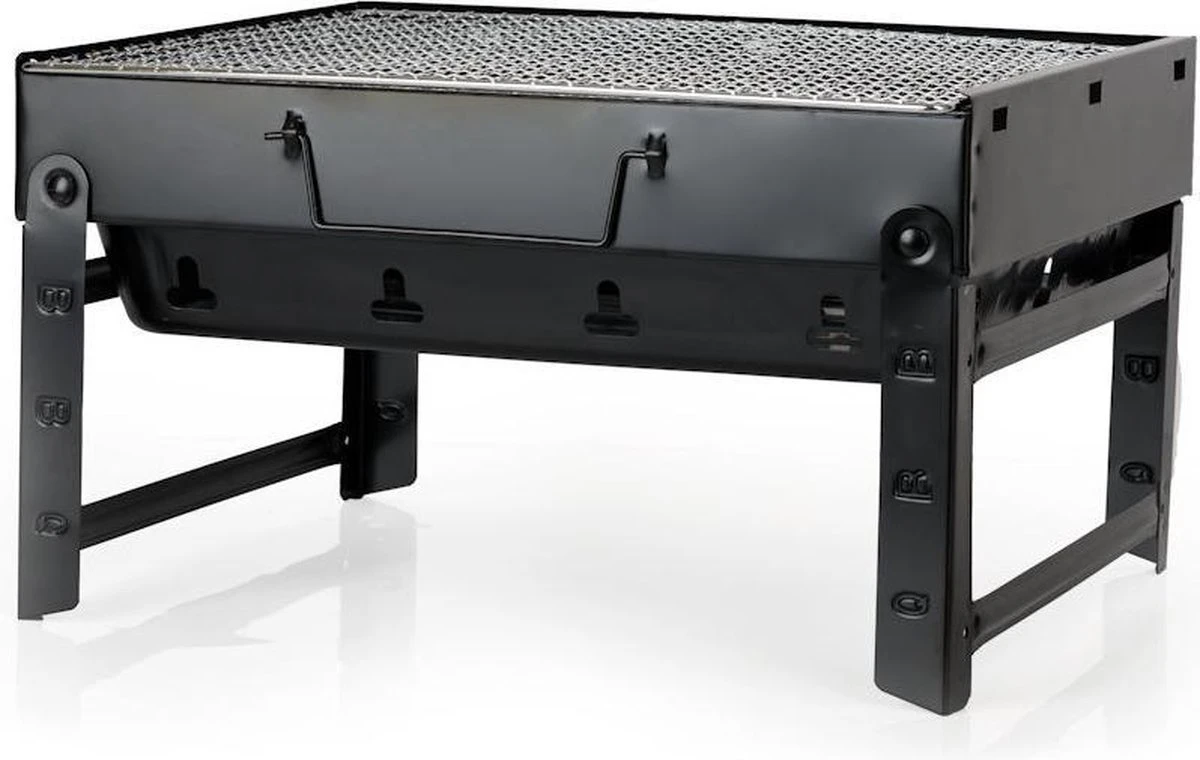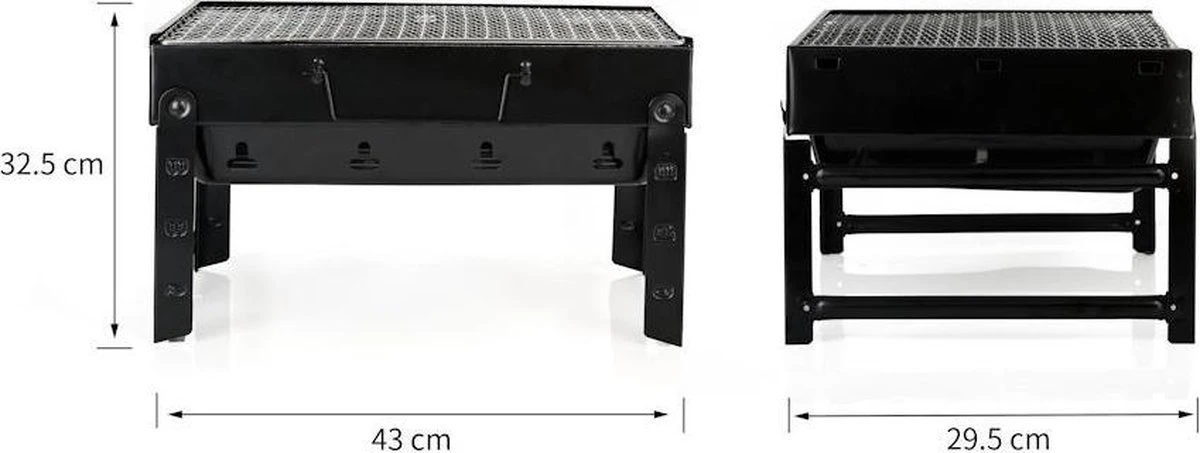 Ce barbecue a une grille séparée. Grâce aux ouvertures de ventilation des deux côtés du barbecue, le charbon continuera à bien briller. L’ensemble du barbecue est en métal et est facilement pliable, pour déplacer facilement ce barbecue ou l’emporter avec vous. Où tu veux.