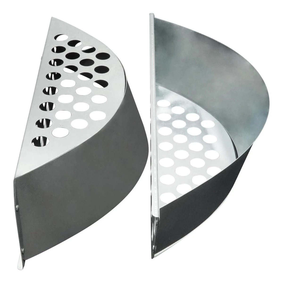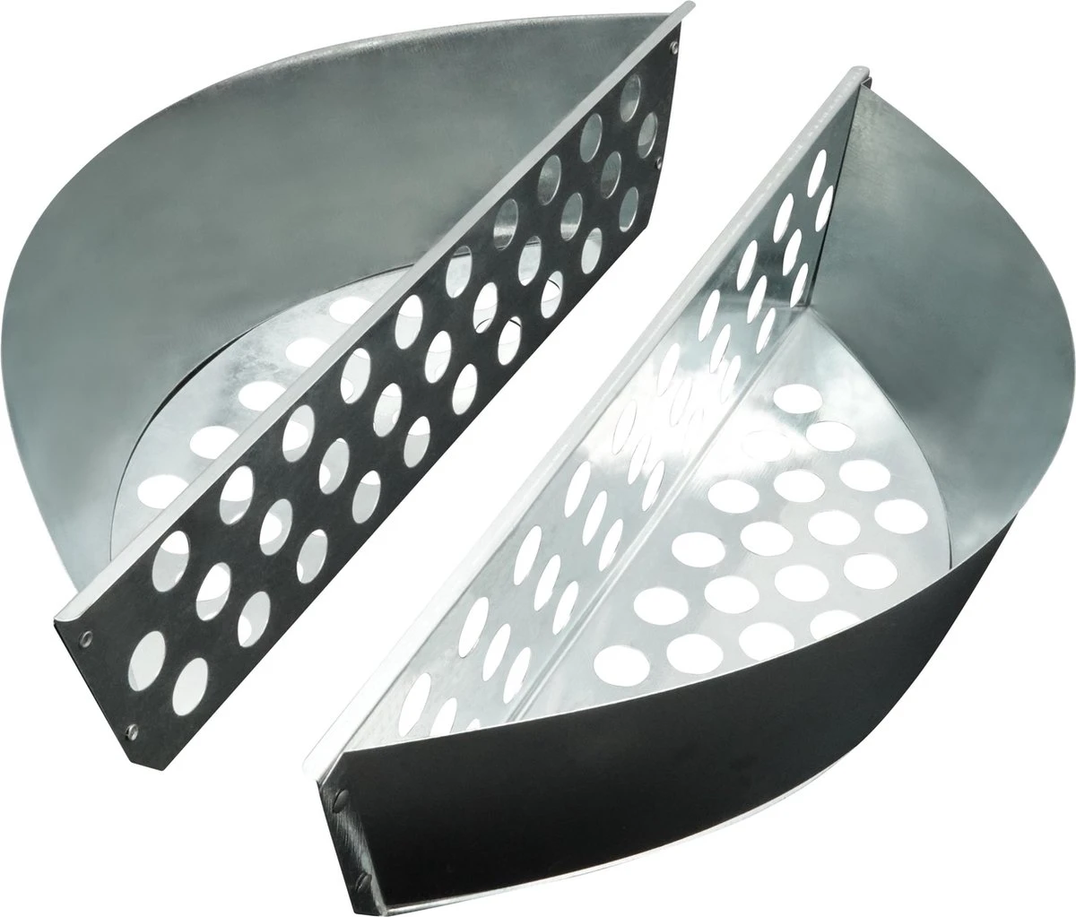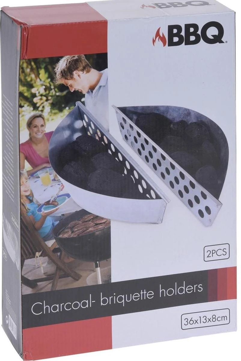 Les porte-briquettes maintiennent le charbon ou les briquettes en place afin que vous puissiez créer un développement de chaleur positionné plus précisément. Ceci est particulièrement important si vous souhaitez des zones indirectes et directes. Sans support, les charbons s’y glissent souvent et le siège du feu devient trop large. Avec un support, vous pouvez donc déterminer si vous utiliserez 1 ou 2. Si vous voulez avoir une zone froide, utilisez simplement 1 des 2 supports. Pour s’assurer que l’oxygène peut passer correctement à travers les briquettes / charbon, le côté droit est ventilé. Taille: 36x13x8cm