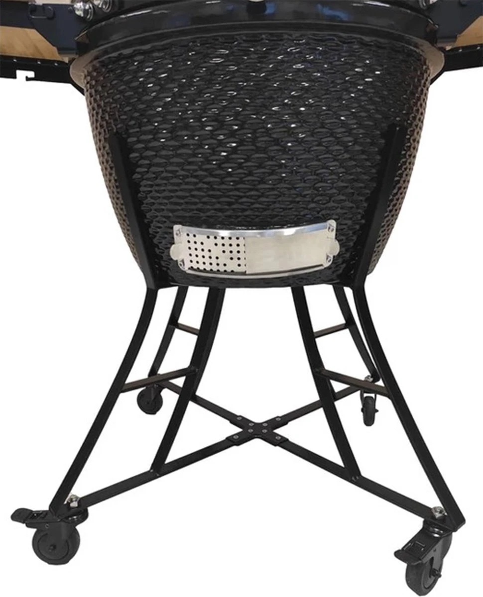 Le nouvel évent amélioré sur le dessus assure une régulation optimale de la température, même lorsque vous ouvrez votre kamado. La principale différence avec la roue de cheminée classique est que notre ventilateur a une housse de pluie. Cela empêche la pluie d’entrer et de couler sur votre nourriture ou votre charbon de bois, vous pouvez donc utiliser votre kamado même par mauvais temps.