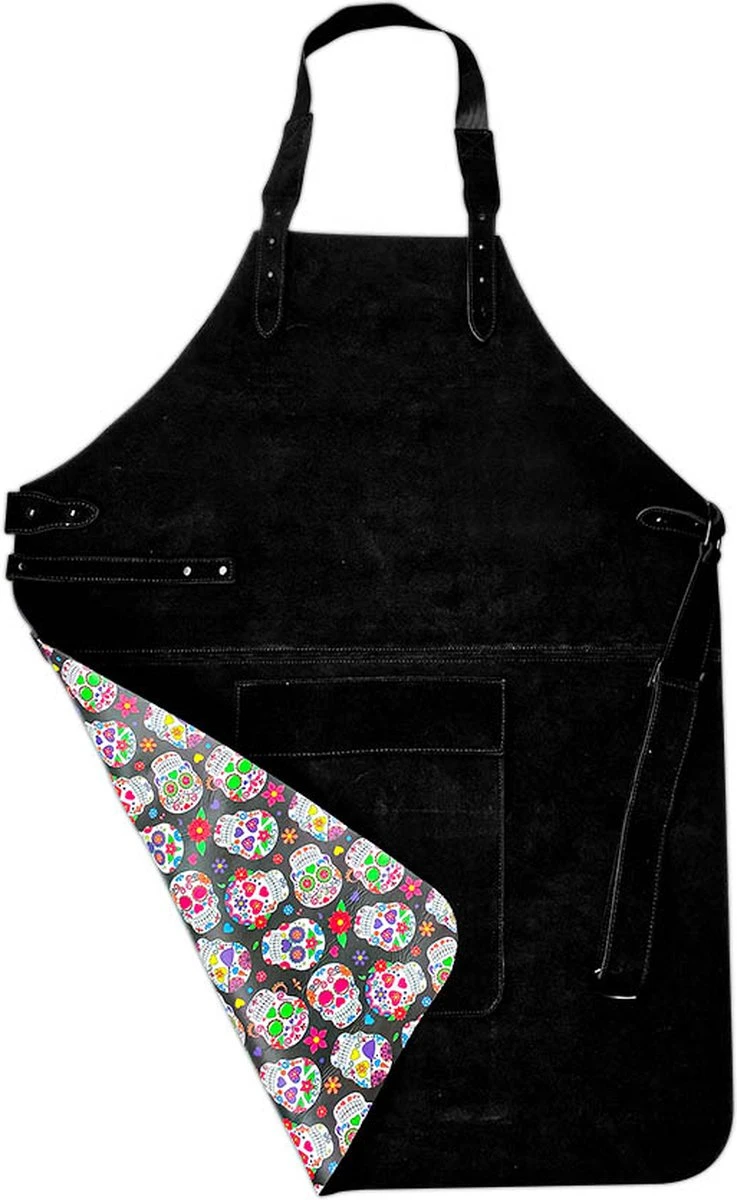 Caractéristiques de ce luxueux tablier de barbecue en cuir Dias de Los Muertos: