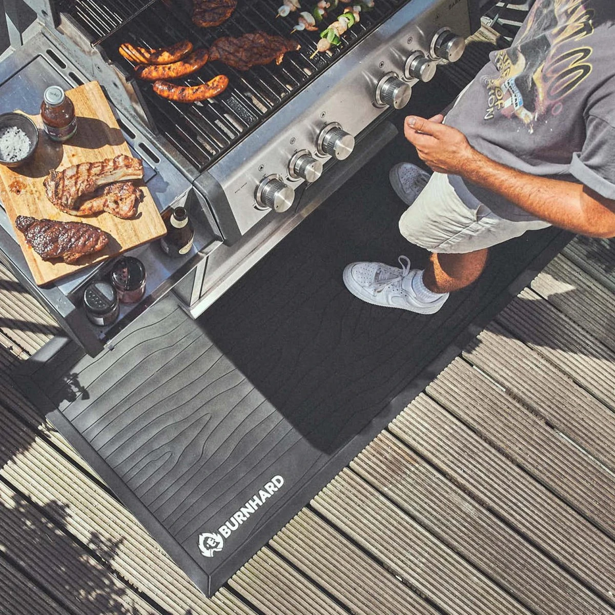 Quelque chose s’est encore mal passé avec le barbecue ? Geen de problème, votre tapis de barbecue BURNHARD protège sans problème votre balcon et votre terrasse contre les taches de graisse, d’huile ou de cendre. Vous pouvez les utiliser pour tous les types de barbecues, fours extérieurs et cheminées. Vous pouvez ainsi vous occuper du plus important : le barbecue !