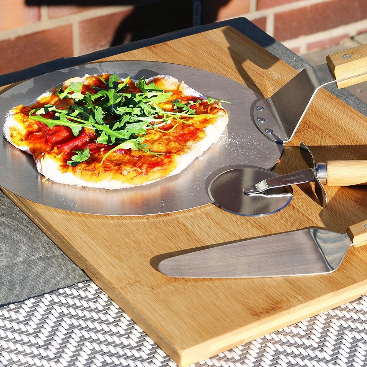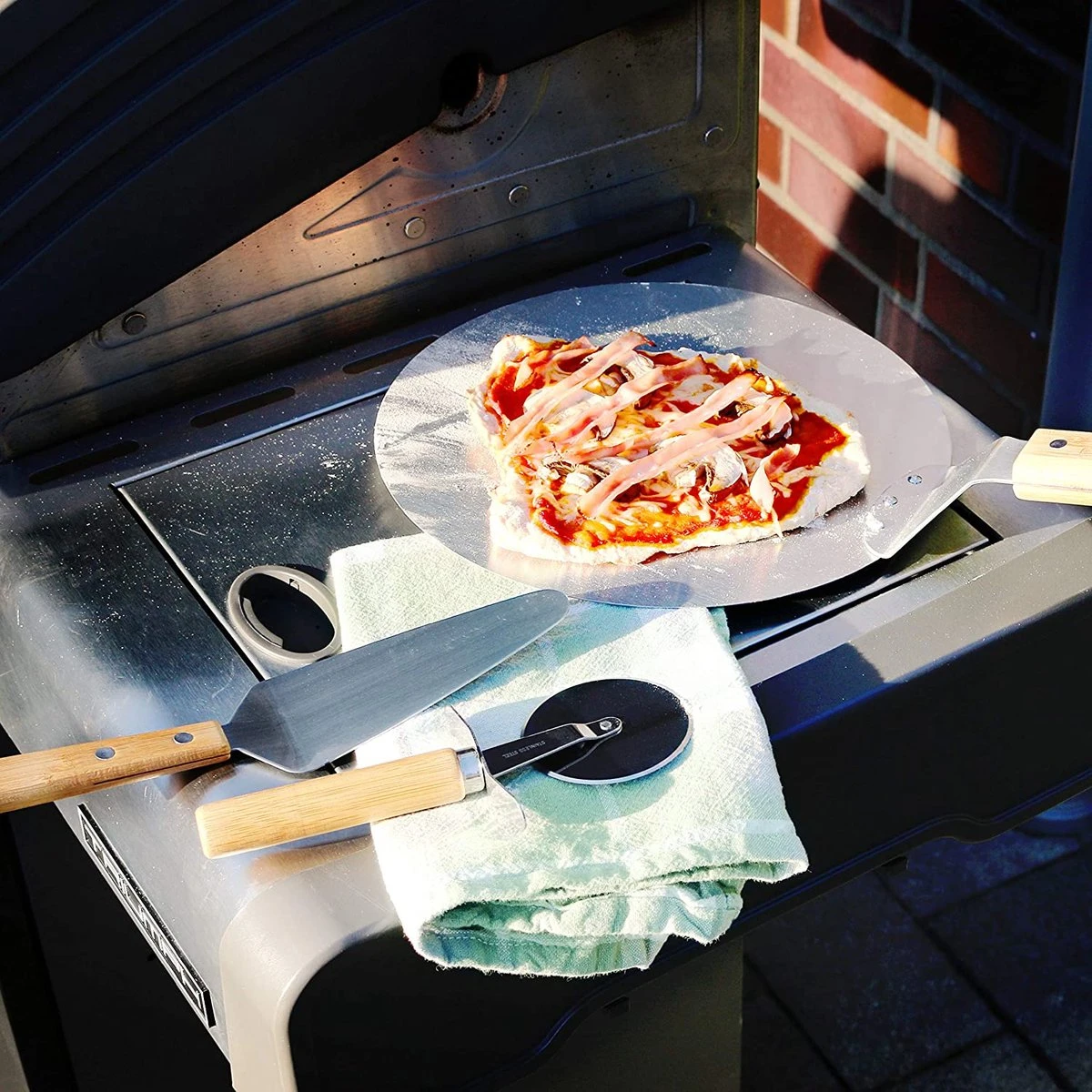 Vous pouvez bien sûr préparer vous-même les pizzas les plus savoureuses. Dans votre eigen four ou à l’extérieur sur le barbecue. Et bien sûr, vous ne pouvez pas vous passer des bons outils. Avec cette pelle à pizza Nonna, vous pouvez vous assurer d’une authentique cuillère pour faire entrer et sortir avec soin et en toute sécurité vos eigen pizzas du four. Une élégante cuillère à pizza en acier inoxydable avec une poignée en bois. Non seulement une aide indispensable, mais bien sûr aussi un accessoire merveilleux pour tout fabricant de pizza.