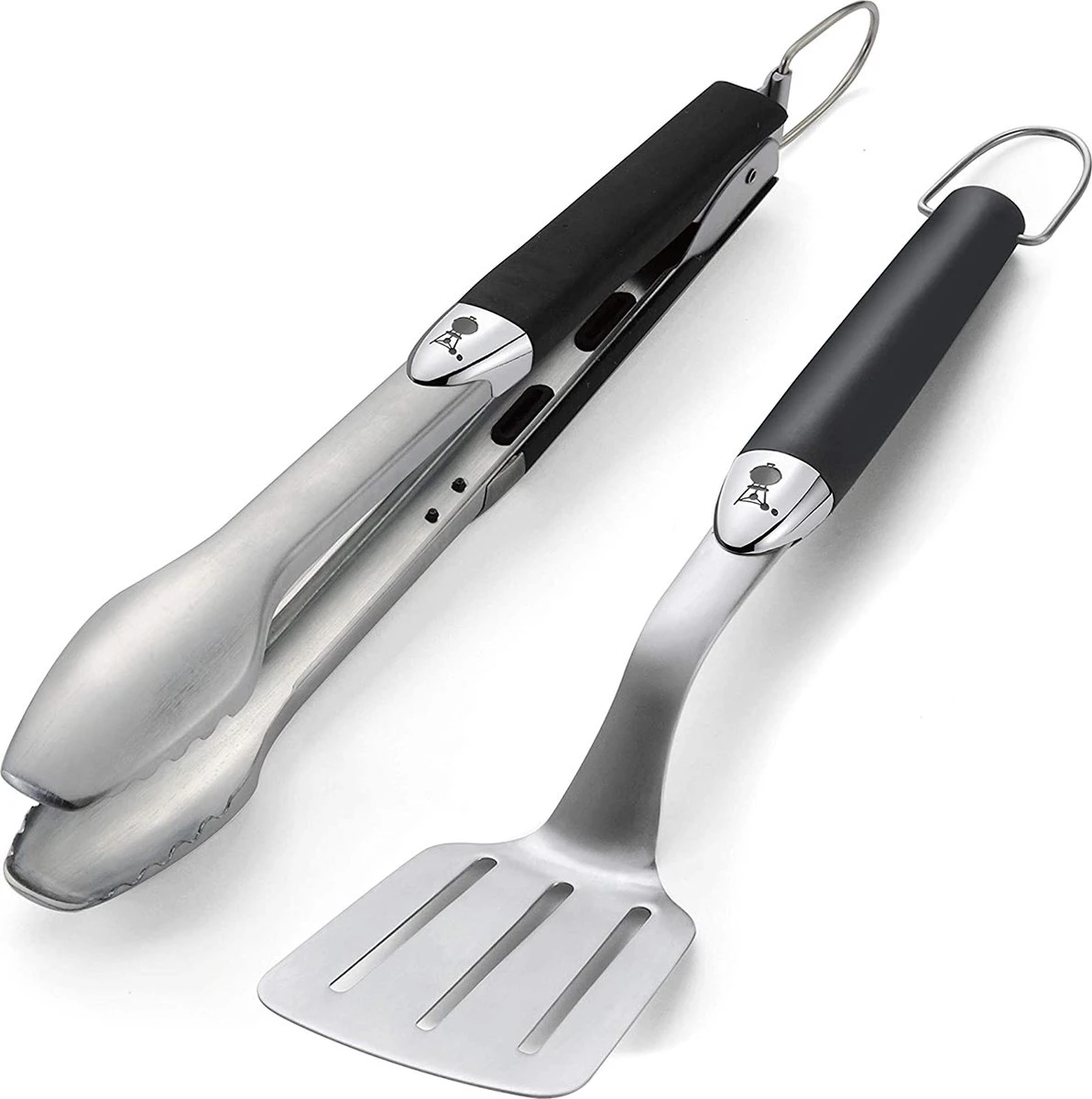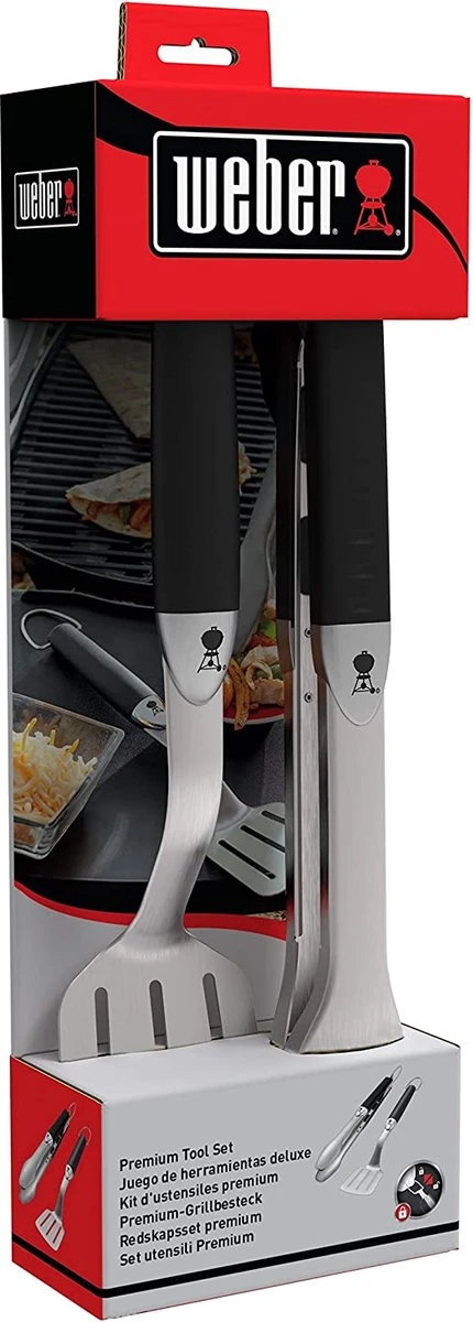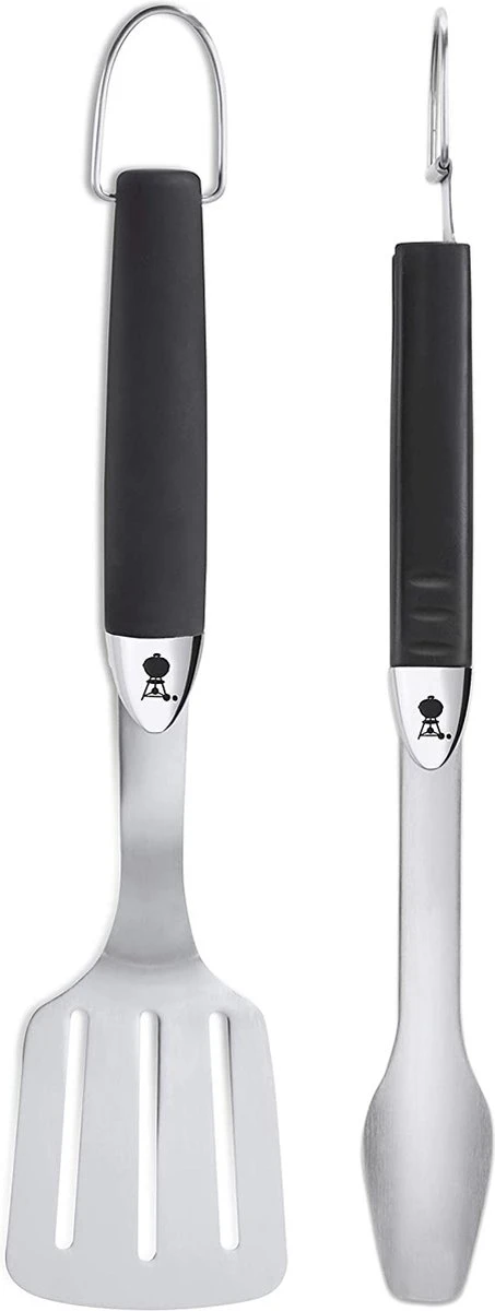 | Contenu de l'emballage | 1 x Weber 6645 couverts grill compact 2 pièces, pince et spatule, acier inoxydable, noir |