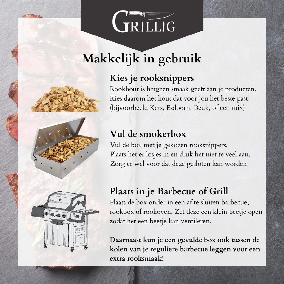 Le fumoir Grillig est fabriqué en acier inoxydable de haute qualité. Cela donne à la box une longue durée de vie et vous pourrez profiter de vos produits fumés très longtemps ! De plus, la forme assure une répartition uniforme de la chaleur afin de réaliser une durée de combustion optimale. Cela vous assure une excellente quantité de fumée qui entre en contact avec vos produits !